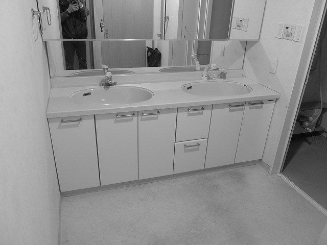 ツインボウルのカウンターの広い化粧台からのリフォームです。